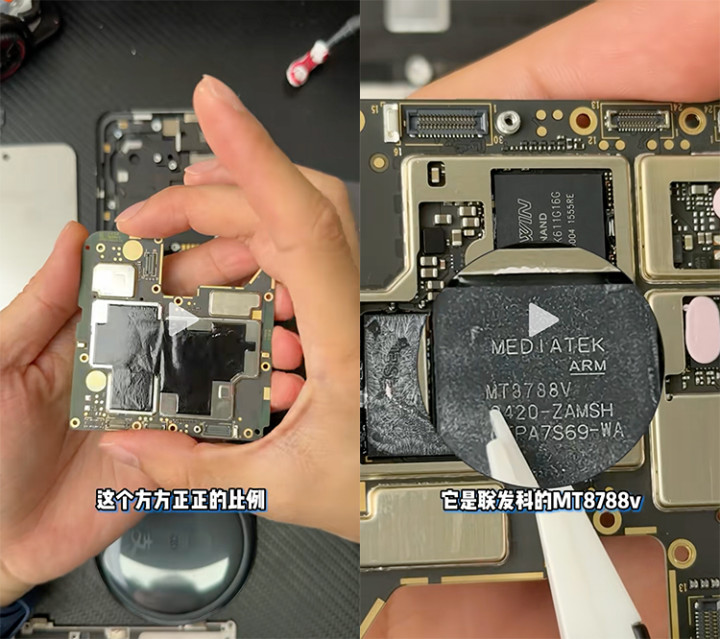 博主一顿操作后,发现从背部拆机无法拆到主板,于是只能从屏幕一侧继续拆,而博主表示这块屏幕比他拆过的绝大多数手机都要难拆,看来做工还是有点东西的。